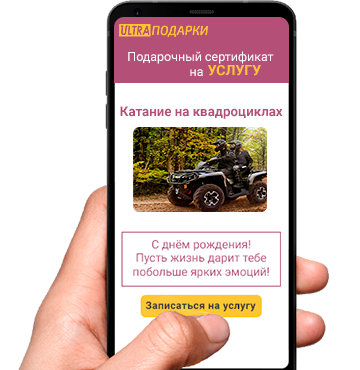 С помощью наших подарков-впечатлений, предоставляемых нашим подарочным сервисом, можно попробовать что-то новое, активно и необычно провести время, полностью расслабиться и раствориться в блаженстве. Предлагаемые сертификаты рассчитаны на людей с разными вкусами и интересами, поэтому каждый сможет найти что-то своё.- Так, для людей, любящих активный отдых, отлично подойдет катание на мотоцикле, квадроцикле или полет на параплане.